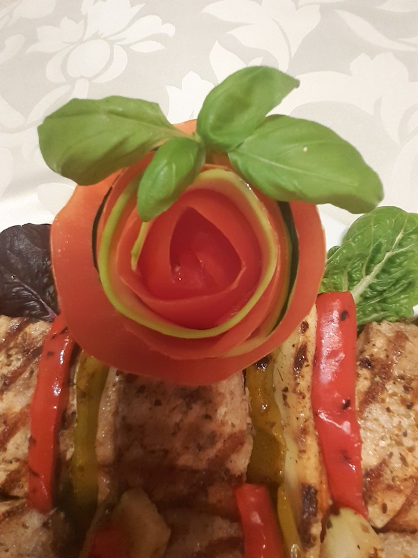Gegrillte Putenspieße, Scheibenkartoffeln